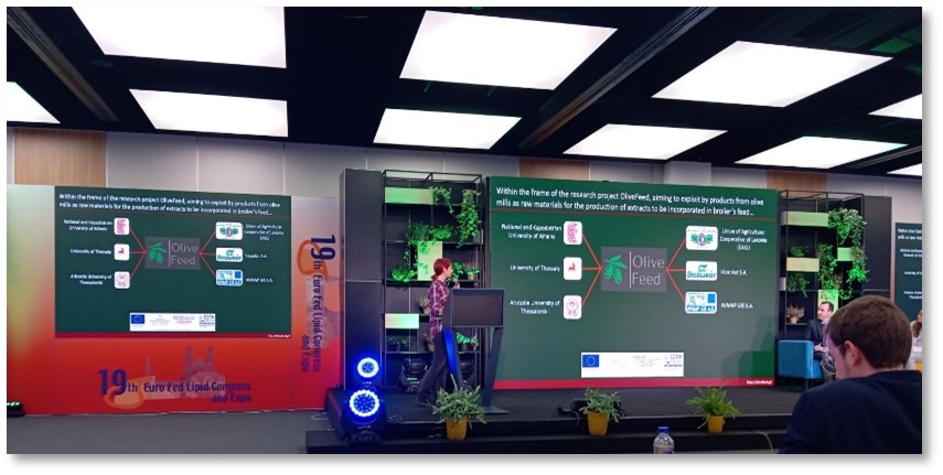 To έργο OliveFeed υλοποιείται από τον Σεπτέμβριο 2021 και καθώς οδεύει προς το τέλος του, οι ερευνητές έχουν εξάγει χρήσιμα συμπεράσματα για την ποιότητα των ζωοτροφών για όρνιθες από παραπροϊόντα ελιάς. Μέρος των αποτελεσμάτων παρουσιάστηκε στο 19ο διεθνές συνέδριο που διοργάνωσε η Ευρωπαϊκή εταιρεία λιπών και ελαίων (Euro Fed Lipid) τον Σεπτέμβριο 2023 στην Πολωνία. Το συγκεκριμένο συνέδριο είναι εξειδικευμένο σε θέματα επεξεργασίας λιπών, ελαίων και λιπιδίων και φέτος συμμετείχαν 500 άτομα, από 40 χώρες, με συνολικά 164 προφορικές ομιλίες και 154 αναρτημένες εργασίες.
