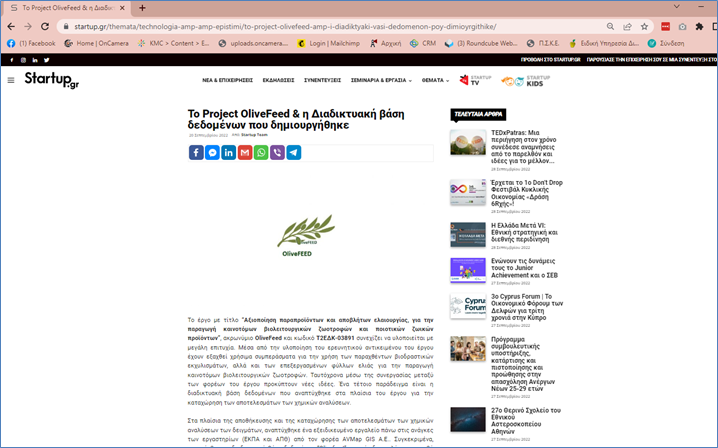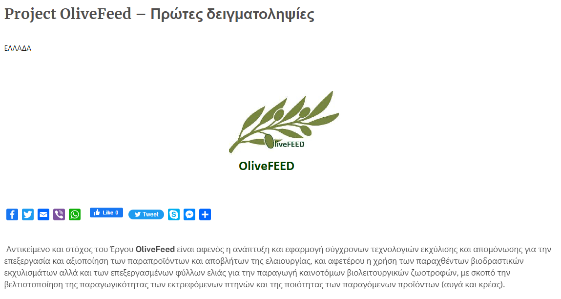 Έρευνα OliveFeed για τα παραπροϊόντα διφασικών ελαιοτριβείων